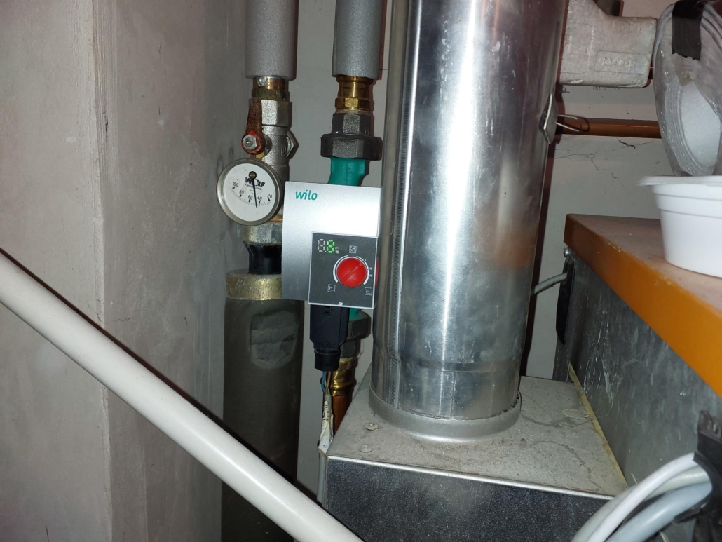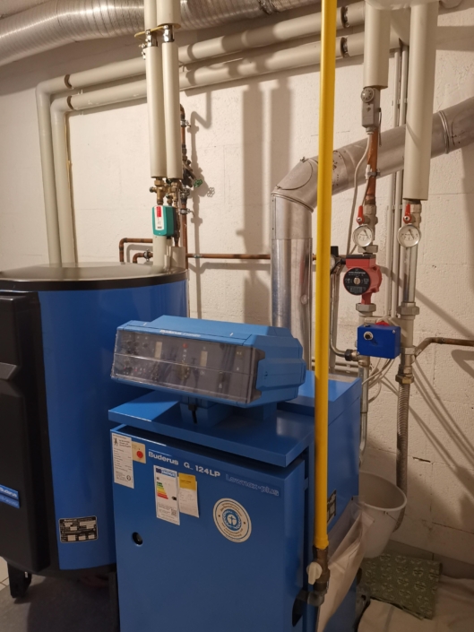 Im Heizungskeller war ein alter Wolf-Kessel montiert. Modernisiert wurde das Gebäude mit einer Vaillant Wärmepumpe. Das Gebäude wird mit Heizkörpern beheizt.