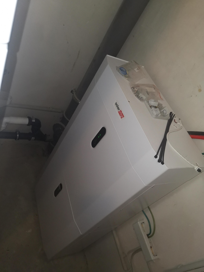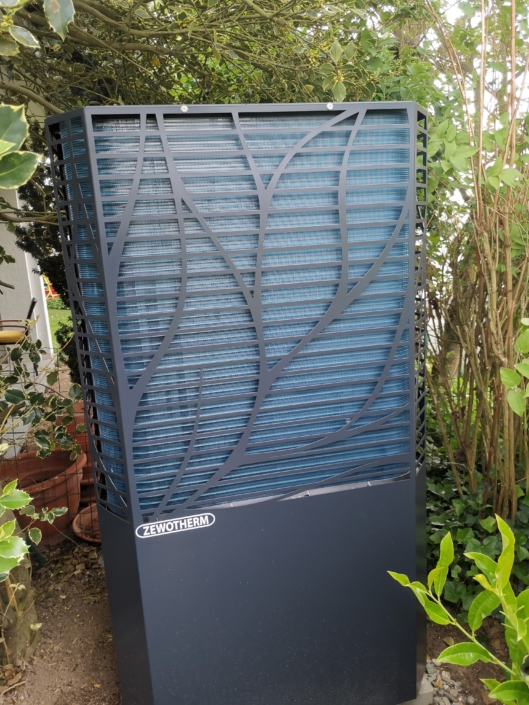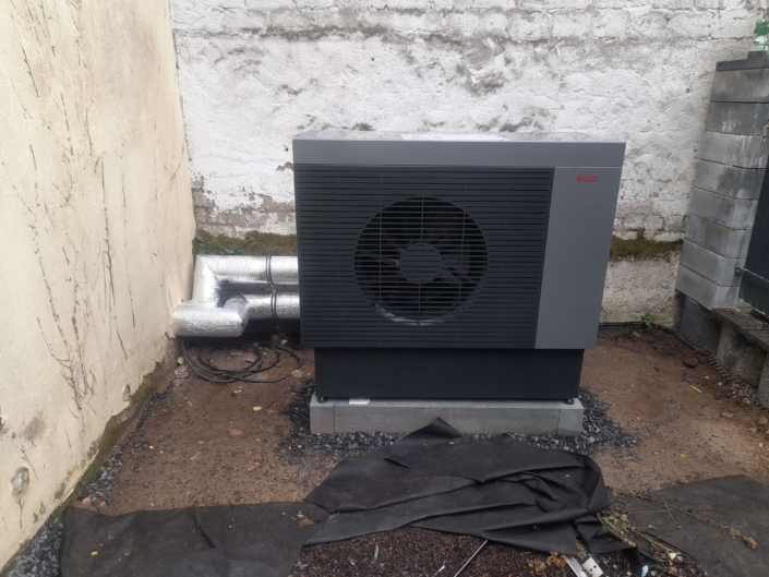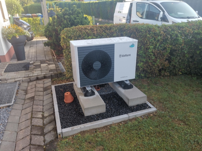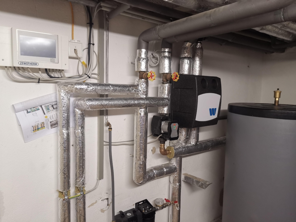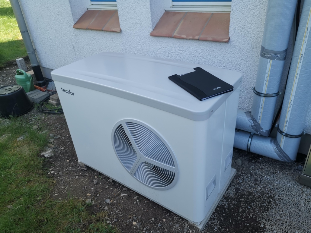 Die Modernisierung erfolgte über eine Luftwärmepumpe von Tecalor mit einem Pufferspeicher und einem Warmwasserspeicher installiert. Die Verbindung zur Außeneinheit, erfolgte über die Außenwand und wurde mit 200% isoliert.