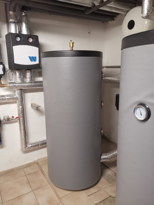 mit 500 Liter Pufferspeicher . Der Warmwasserspeicher konnte ebenfalls genutzt werden, damit der Kunde seine Solaranlage weiter betrieben werden kann.